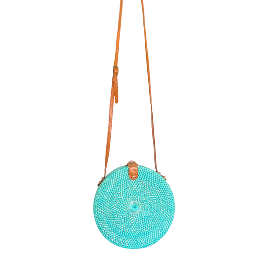 Camilla Round Rattan Bag - Aqua