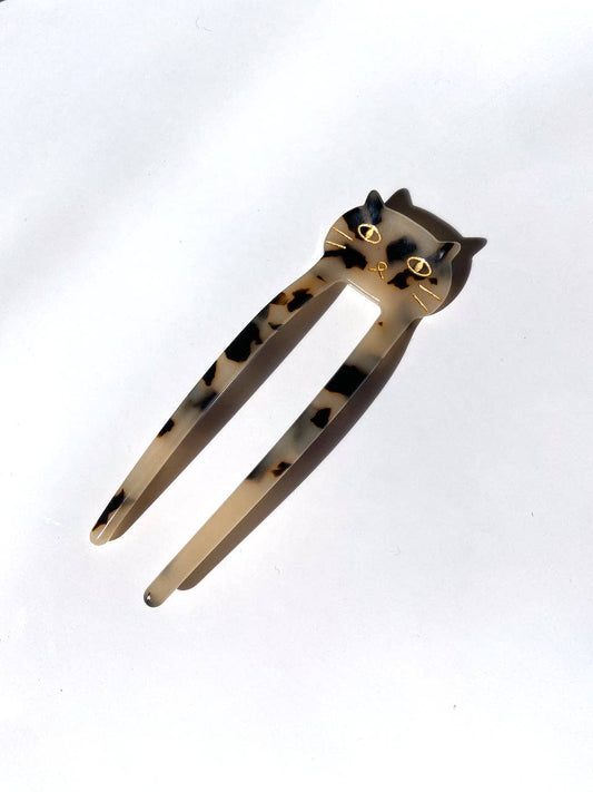 Hand-painted Kitty Cat French Chignon Hair Pin