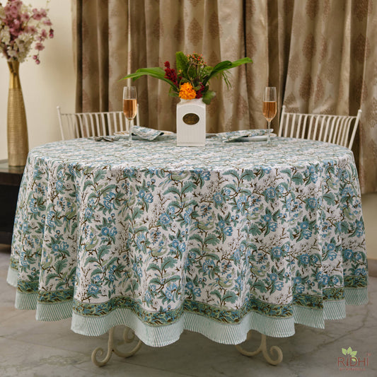 Turquoise Old Moss Green Hand Block Print Cotton Tablecloth