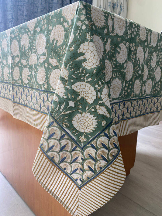 Sage Russian Green Hand Block Print Cotton Tablecloth