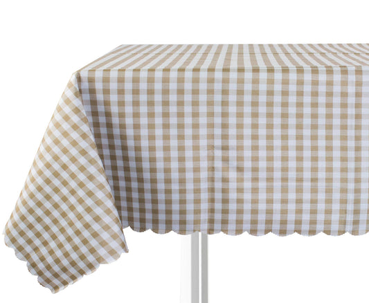 Brown-White Plaid Waterproof Scalloped 55" Square Tablecloth