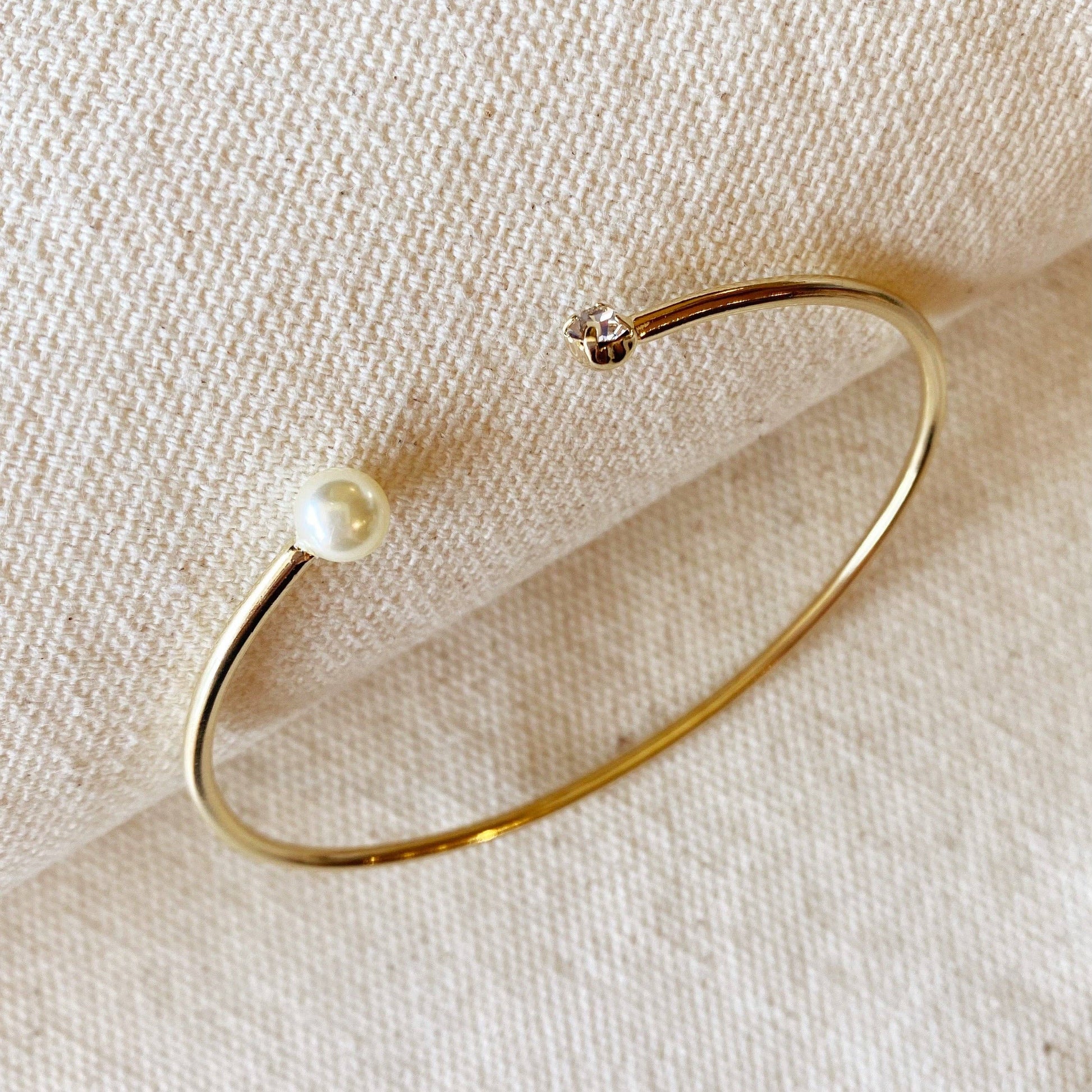 18k Gold Filled Pearl and Crystal Cuff Bracelet